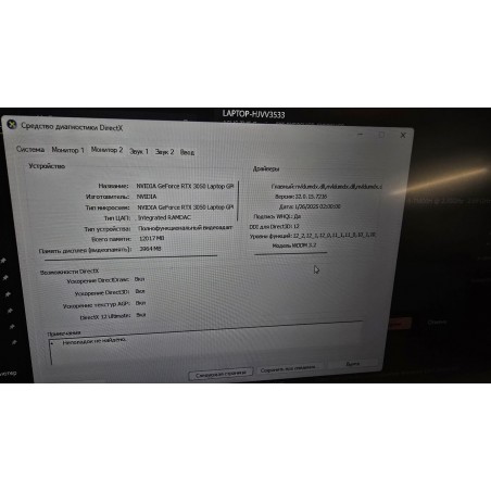 Видео карта : Intel UHD + Nvidia Geforce RTX 3050
